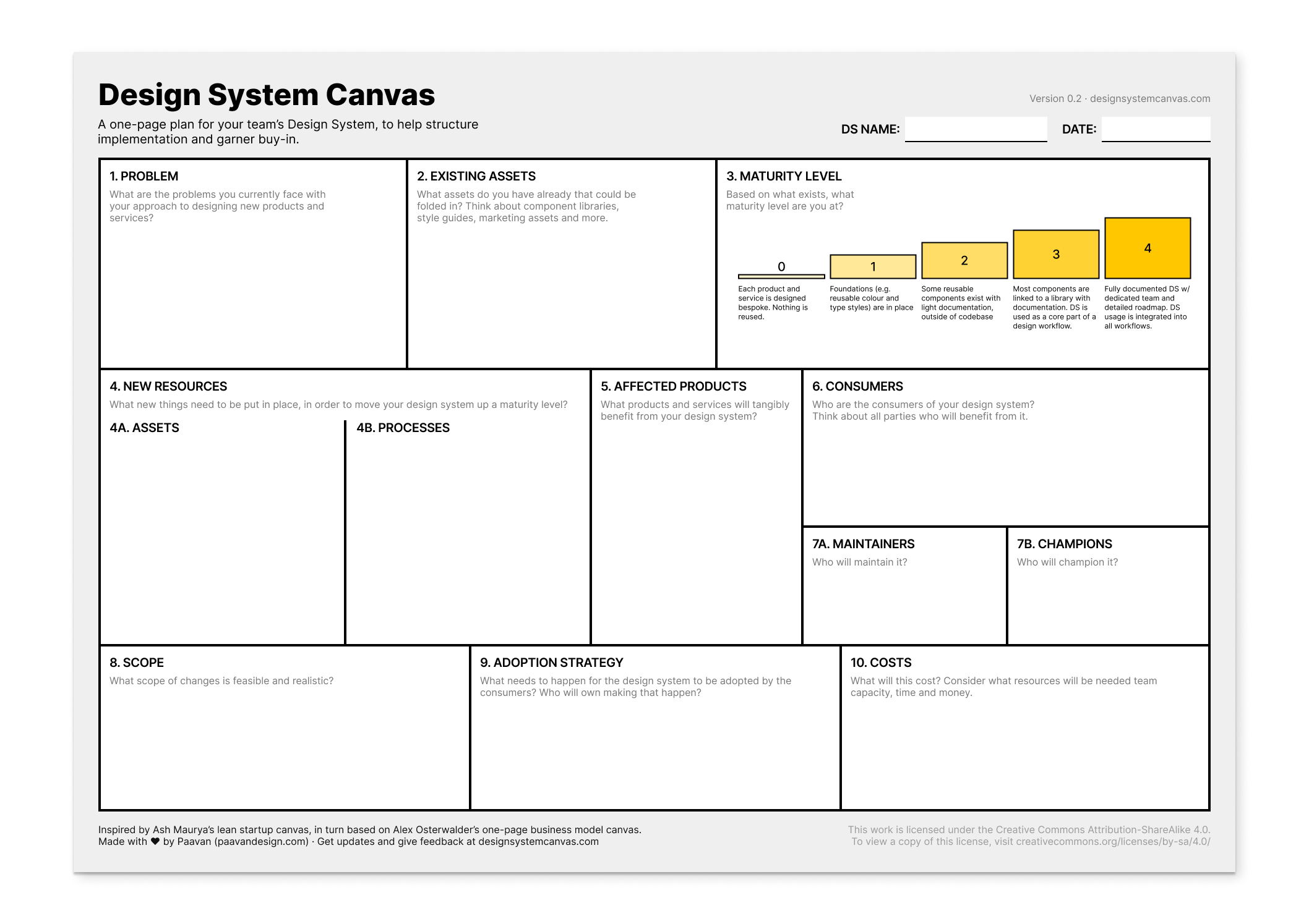 The DS canvas helps product designers advocate for the creation of or scaling up of a design system.